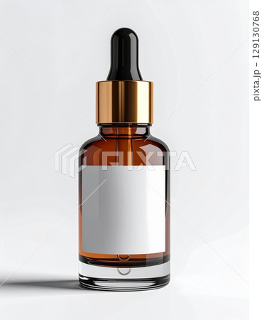 Amber Glass Bottle with Golden Cap and Dropper on a Clean White Background