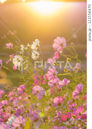夕日とコスモス(大分県大分市)