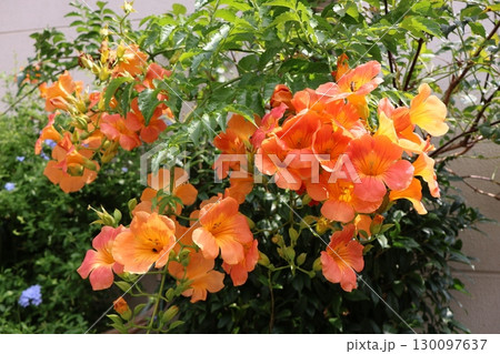 オレンジ色の花木ノウゼンカズラ