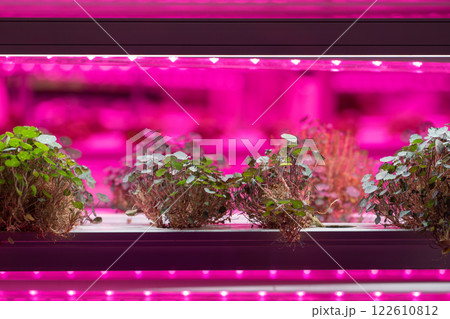 Full spectrum LED grow lights for Nasturtium. Hydroponics and modern methods of growing microgreens