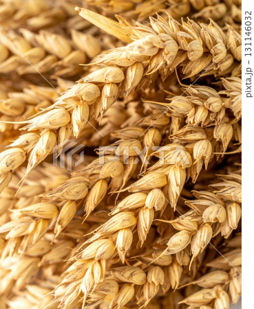 Close Up Bunch of Golden Wheat Ears Displaying Agriculture Harvesting and Healthy Food