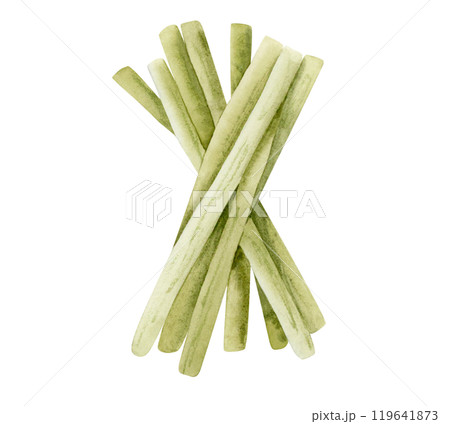 Green bouquet stems separate watercolor illustration isolated on white. Floristic element of peony or tulips flowers stalk. Floral wedding design object