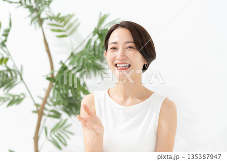 かわいいお花屋さん 女性 上半身 解説と拡大