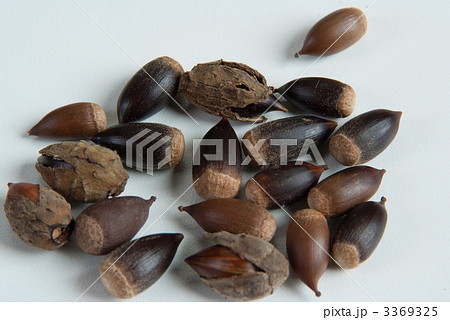 どんぐりとクヌギ、椎の実。秋のイメージ