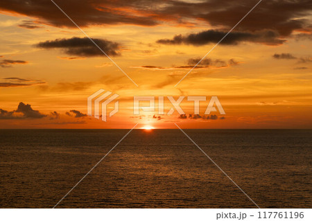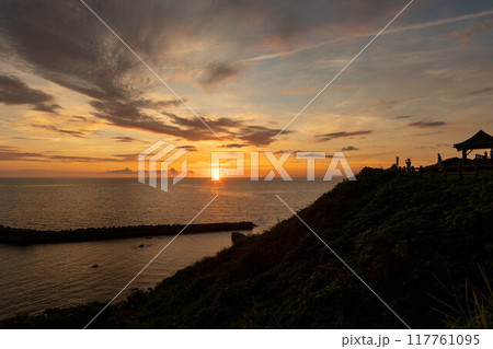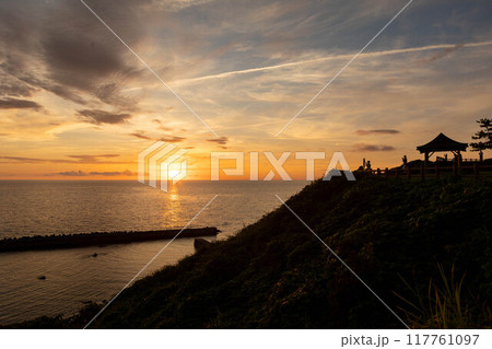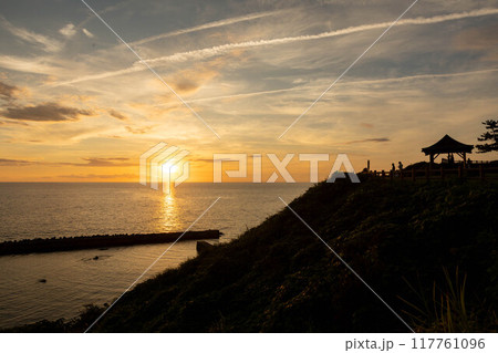 夕日が丘公園 日本海に沈む夕日 新潟県柏崎市椎谷鼻