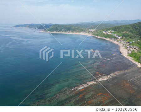新潟 柏崎 椎谷鼻灯台付近の海岸風景(ドローン空撮)