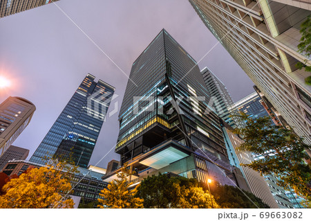 日本の東京都市景観 大手町駅とつながる超高層ビル「東京サンケイビル」などを望む