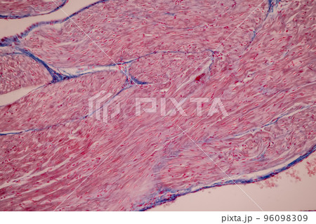 Tissue of Blood human, Vein human, Artery human and Heart muscle human under the microscope in Lab.