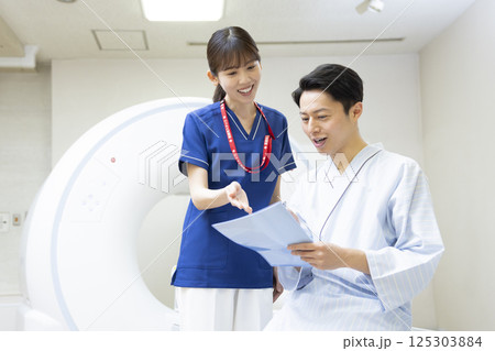 CT検査を受ける中年男性