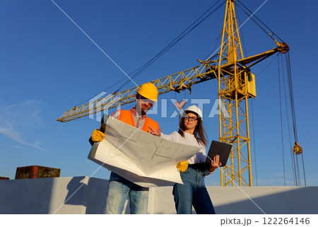Engineer team project planning outdoor survey team, industry factory construction site. teamwork meeting . cooperation workers