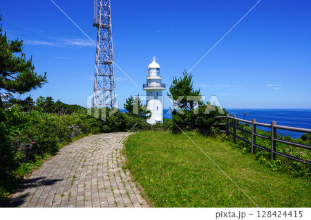 快晴の北海道函館市恵山岬灯台の朝の風景を撮影