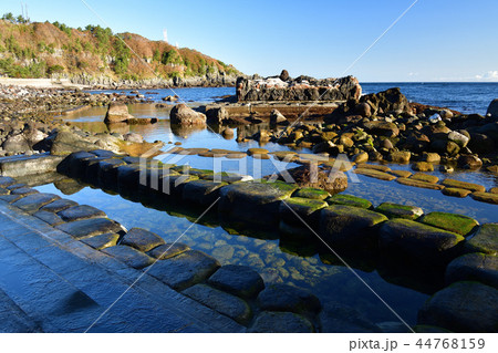 晩秋の北海道函館市椴法華で水無海浜温泉の朝の風景を撮影