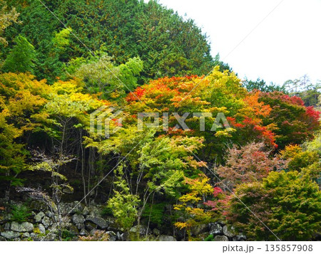 (山梨県)遊歩道の紅葉が美しい、秋の昇仙峡・石門(いしもん)