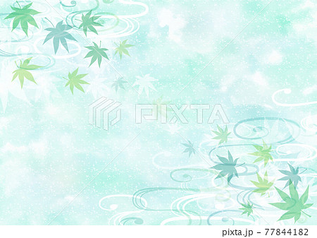 水面の波紋と映り込む青紅葉 涼しげな背景イラスト