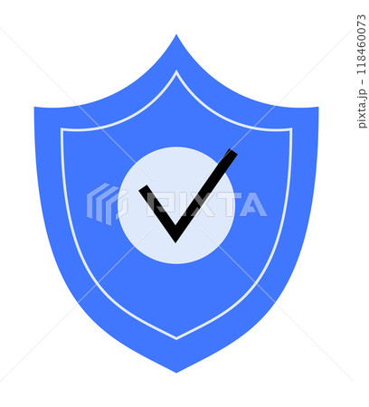 Blue shield with a check mark at center. Ideal for security, protection, safety, approval, trust, digital security themes. Clean, vector style.