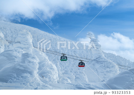 山形蔵王の白銀世界の樹氷とゴンドラ