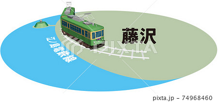 藤沢 江ノ島電鉄のフレームとパネル ベクターイラスト背景透明