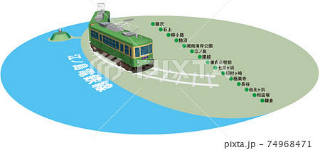 江ノ島電鉄路線のフレーム ベクターイラスト背景透明