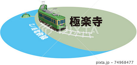 極楽寺 江ノ島電鉄のフレーム ベクターイラスト背景透明