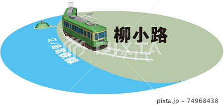 柳小路 江ノ島電鉄のフレームとパネル ベクターイラスト背景透明