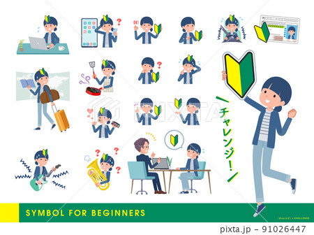 初心者マークに関するTシャツマッシュヘア女性のセット