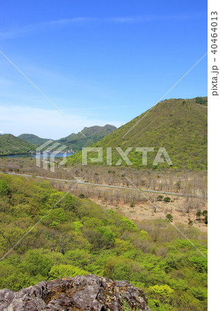群馬県 榛名山 榛名高原の沼の原 スルス岩から見た榛名湖と榛名富士