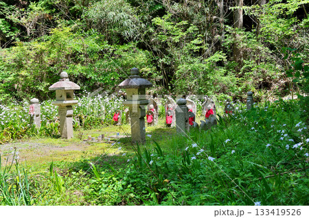 新緑の京都 槇尾山西明寺 趣のある境内 苔むした石灯籠