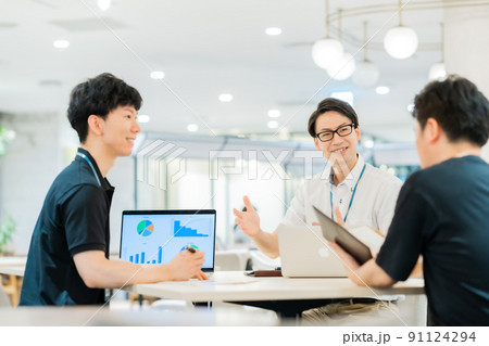 洗練されたオフィスで打合せをするビジネスマン