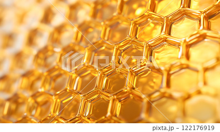 ハニカム構造の金色のジェル状の背景(生成AI画像)