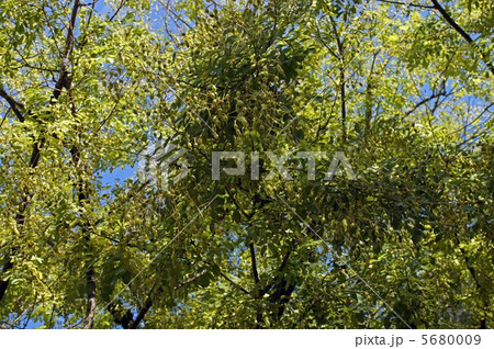 イヌエンジュの葉と青空