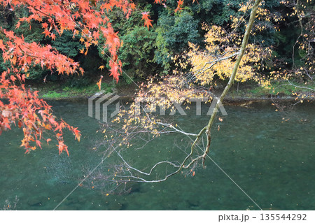 紅葉を映す川面 嵐山渓谷 e