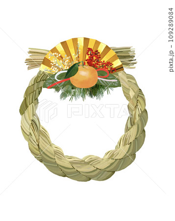お正月飾り しめ飾り しめ縄 コピースペースあり手描きイラスト