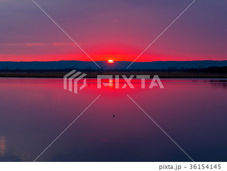 冬の釧路湿原の夜明け(北海道・標茶町)