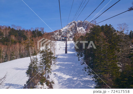 群馬県 冬の丸沼高原日光白根山ロープウェイから南東(白根山,ゲレンデ,山頂駅)方面を見る