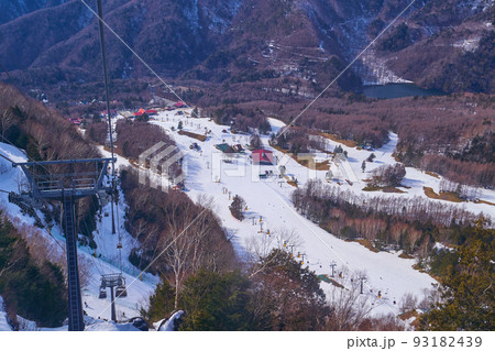 群馬県 冬の丸沼高原日光白根山ロープウェイから北側の眺望(燕巣山,丸沼,ゲレンデなど)