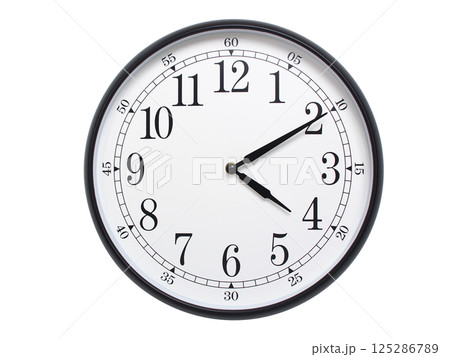 Simple round wall clock with black frame and white face, showing the time exactly at 03:25 or 15:25. Representing time precision in concepts of deadlines.