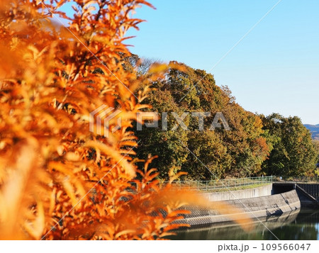 秋の横尾池公園 里山の紅葉 メタセコイアの紅葉