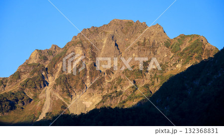 秋の北アルプス 涸沢カールへの道 横尾キャンプ場から 前穂高岳のモルゲンロート