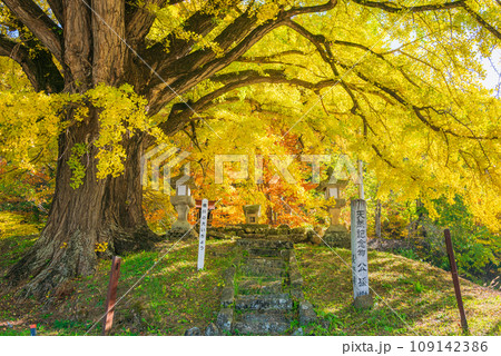 【横川の大イチョウ】銀杏とモミジのコントラスト【松本市四賀】