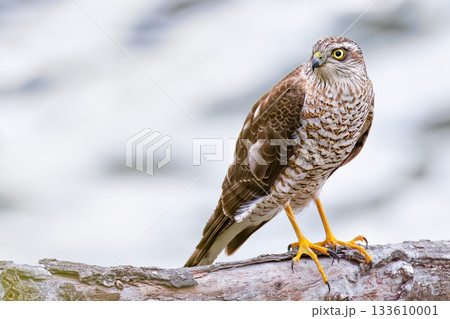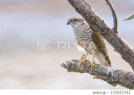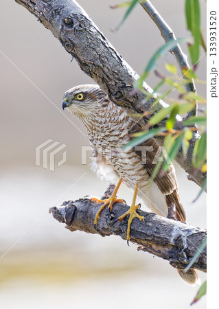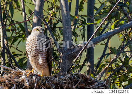 木陰に隠れて獲物を探すハイタカ幼鳥