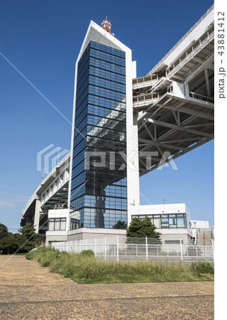日本の横浜都市景観 横浜ベイブリッジのスカイウォークへとつながるスカイタワー出入口などを望む