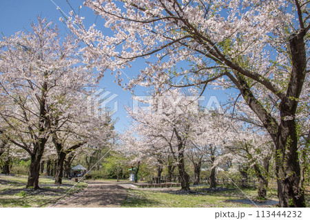 横浜市 こども自然公園の桜山の満開桜とバーベキュー広場
