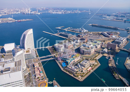 日本のの横浜都市景観 横浜の街並みや観覧車などを望む