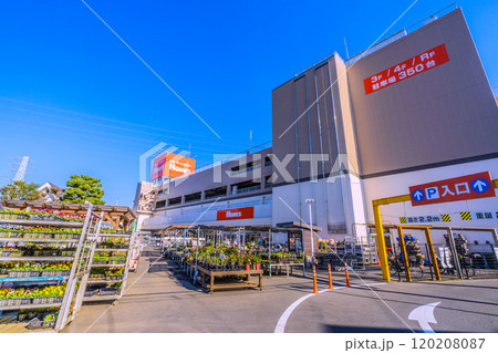 日本の横浜都市景観 東急電鉄 江田駅 東口近くのホームセンターなどを望む=12日