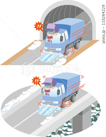 交通安全<道路凍結・トラックドライバー・トンネル出口や橋の上>