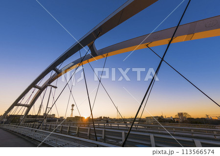 夕日に照らされた橋 横浜・鶴見川橋 / Tsurumi River Bridge, Japan