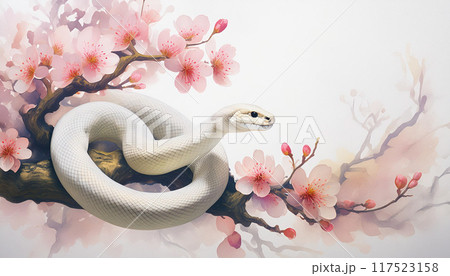 蛇,白蛇,巳年テンプレート,Generative AI,AI画像