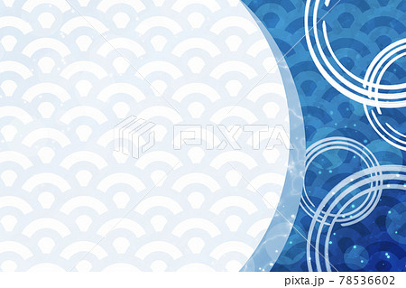 和柄の背景 長方形 青海波模様 キラキラ 水彩風
