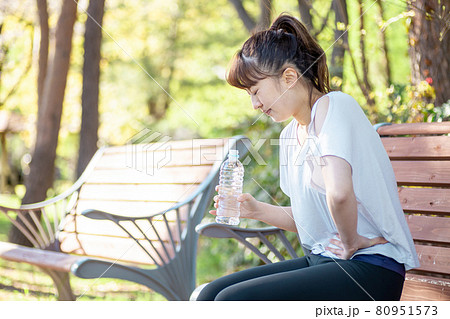 トレーニング中に休憩する女性(腰痛・腹痛)