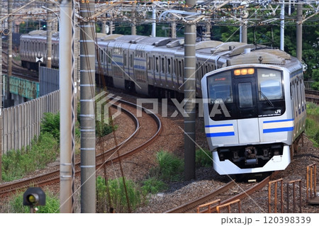 戸塚駅近くのカーブを走行する横須賀線 E235系